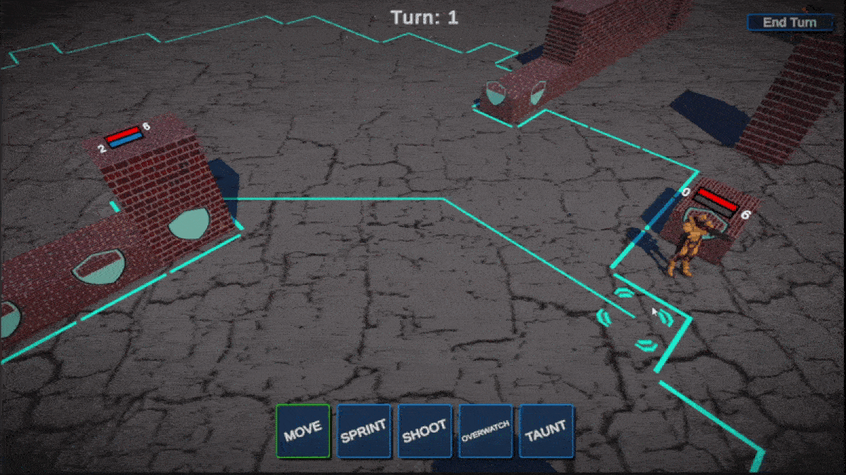 I began the project using Code Monkey’s turn-based strategy course as a foundation, then expanded on it with my own systems to make it feel closer to XCOM. The game generates a tile-based grid at startup, which is used by all units and obstacles. Each soldier has a limited number of actions per turn, allowing them to move, sprint, shoot, or enter overwatch mode.