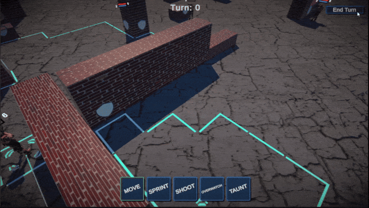 The enemies use a point-based decision system to determine which action to take each turn. When deciding whether to move, the AI considers whether it is currently being flanked, whether a potential destination tile would leave it flanked, and whether moving would allow it to see targets with a low chance to hit.